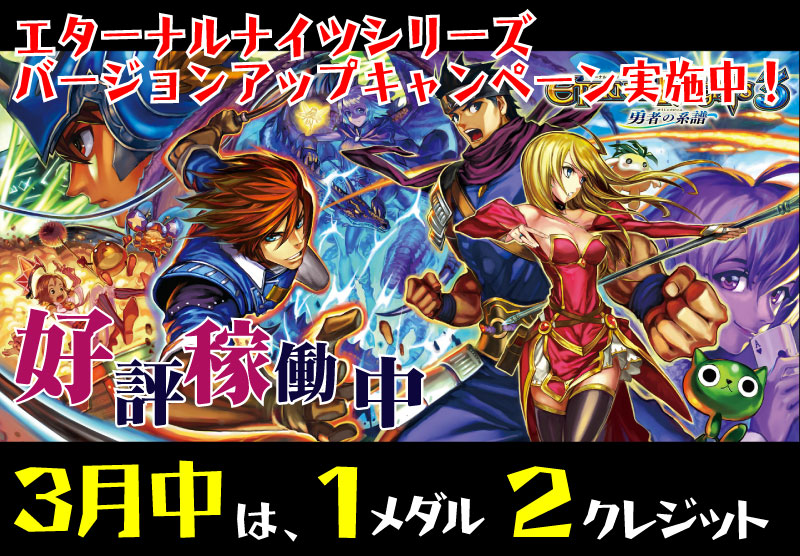 「スターホース2」に新機能が追加! なんと、ステーションに座ったまま、 メダルバンクからメダルが出し入れできちゃうんです! ものすごく便利ですね。 初回のみ店内カウンターで、登録が必要となります。 お気軽にスタッフまでお声掛け下さい。 快適空間となりましたボヤージュスタホ2で是非ごゆるりとプレイください。 2010.03.04 Thu 10:00:00 エターナルナイツ最新作情報最新作『エターナルナイツ3~勇者の系譜~』が 2010.02.11 Thu 14:39:38 ボヤージュ馬ゲー祭り開催! |