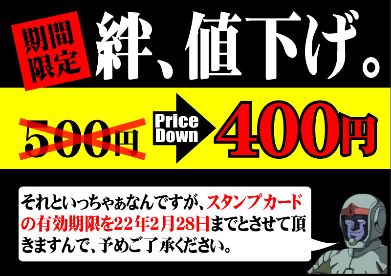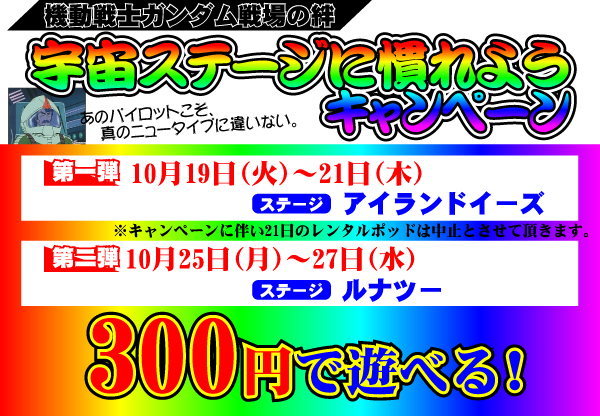 詳細はコチラをクリック。 新モビルスーツも登場するらしいですよ! そして、従来のカードから「バナパスポートカード」へ。 コナミのイーパス見たいに多種多様のゲームで使えるようになるそうです! でも、 今のところ、ドラゴンボールの新作が対応してます! コレ一枚でドランゴンボールもガンダムも遊べる! だがしかし、ボヤージュにはドランゴンボールはナッシング!(ノД`)シクシク ヤムチャさぁぁぁぁぁん!!(ノД`)シクシク だがしかぁぁぁし、戦場の絆は単なるバージョンアップでは終わらない!さらに翌月の8月。新プロジェクターランプが導入予定なのである!(予定) 画像が格段にキレイになる!(予定) PR 2011.01.21 Fri 08:57:19 ついにあのMSが登場!!只今、「機動戦士ガンダム戦場の絆」において、
